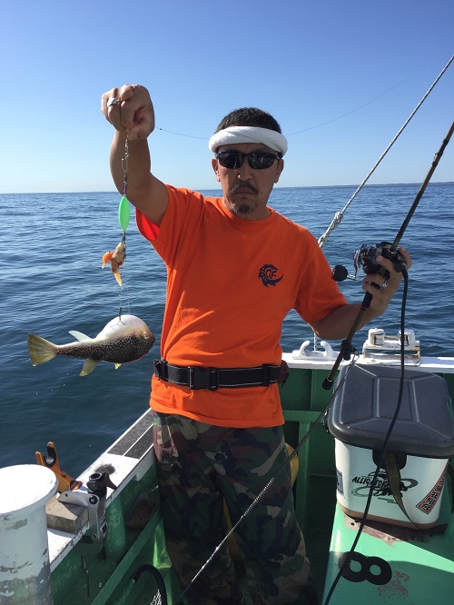 フグ:朝のうちは苦戦したものの7時頃から反応にのること何回ありコンスタントに釣れた。