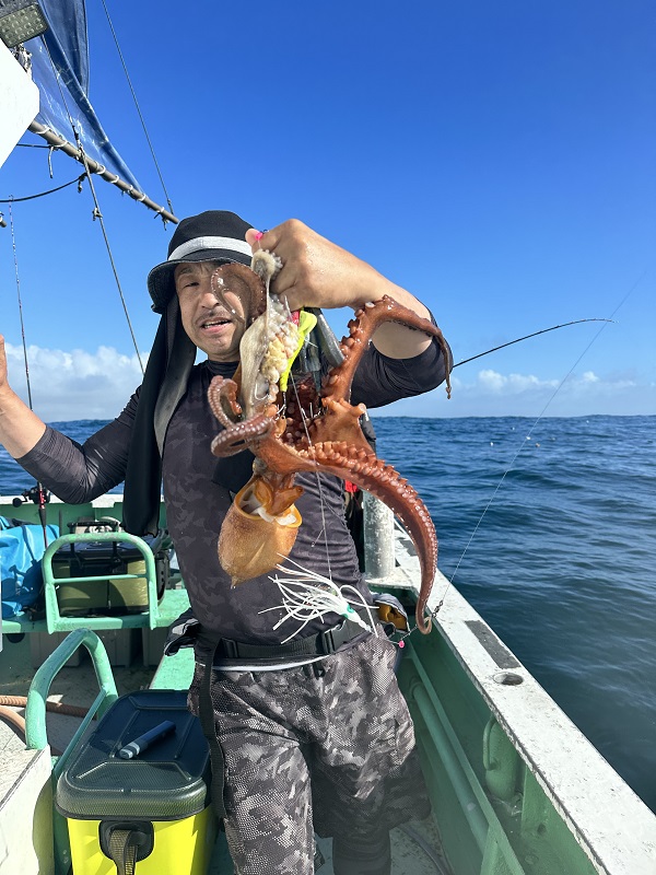 台風7号の影響でうねり高くタコの活性下がり数伸びなかった。
