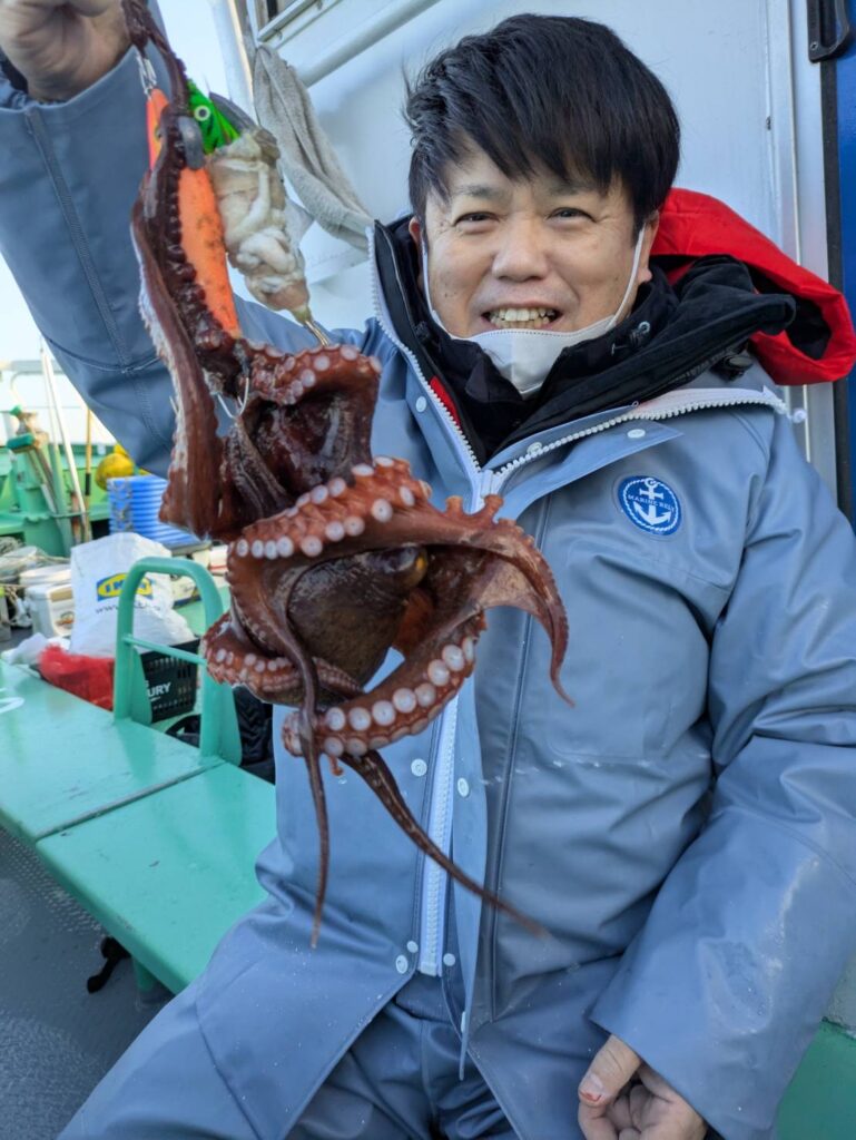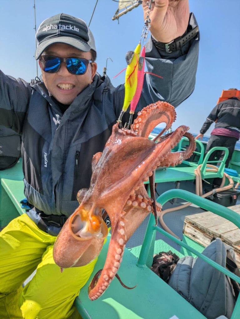 釣果 マダコ 2~21杯 竿頭16番席 最大2.1kg スソは船酔い