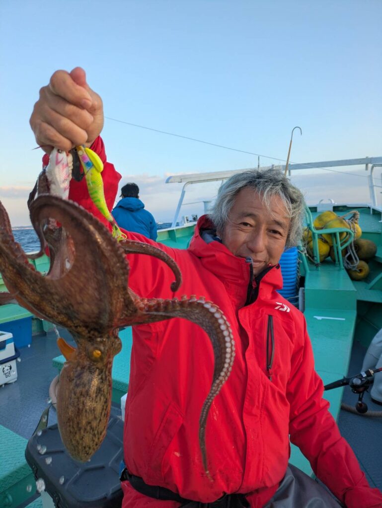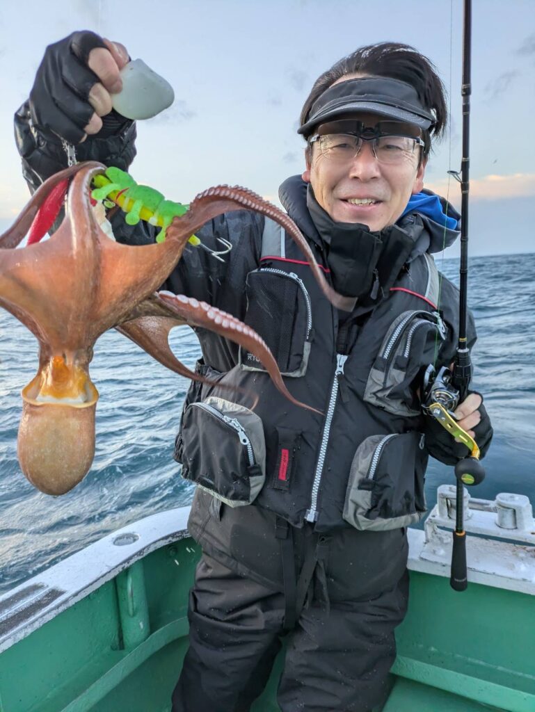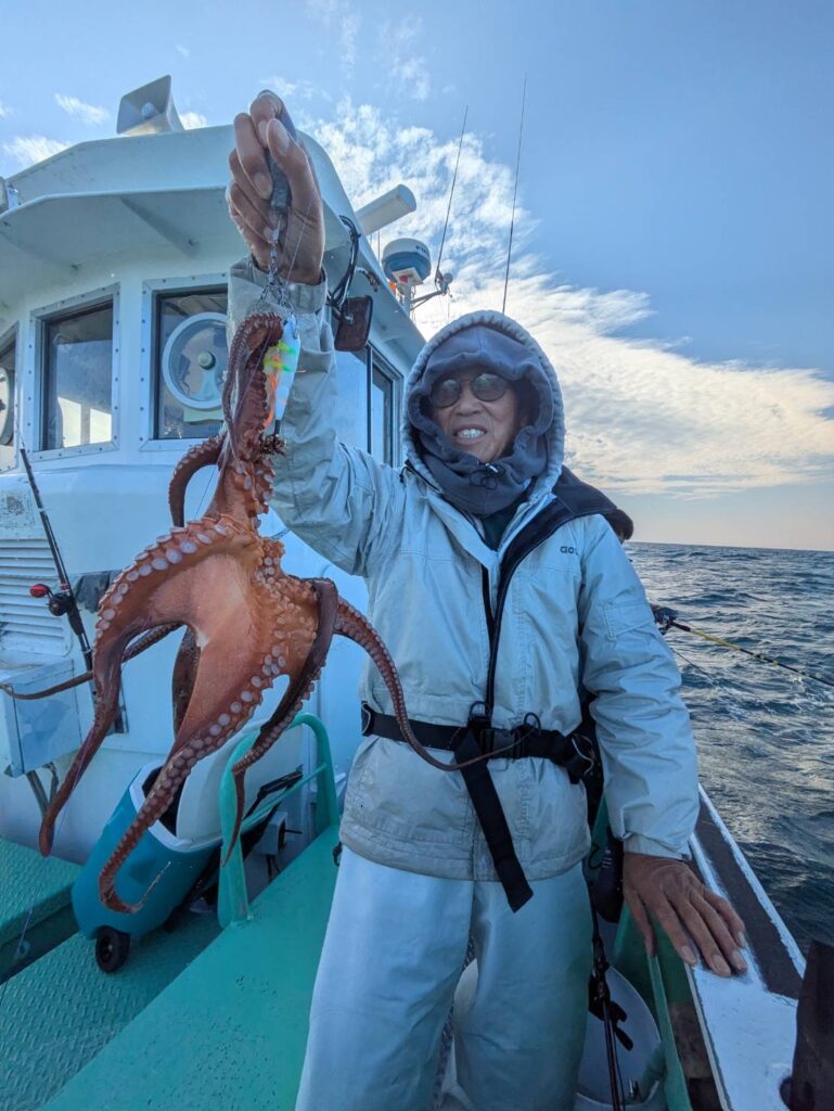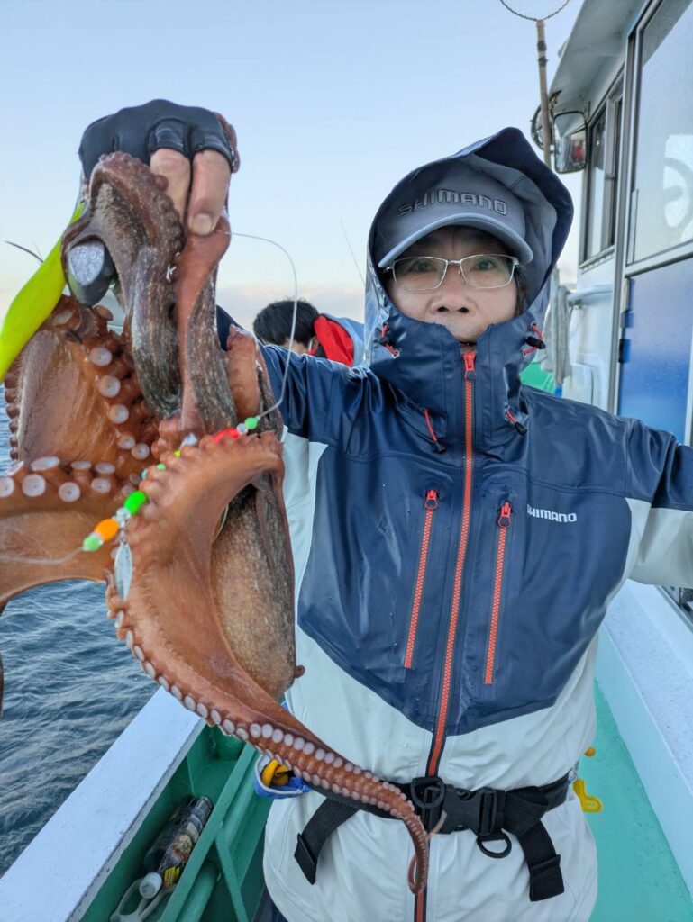 北北東の風で波高く釣りずらい状況もタコの活性高く良く掛かりました。