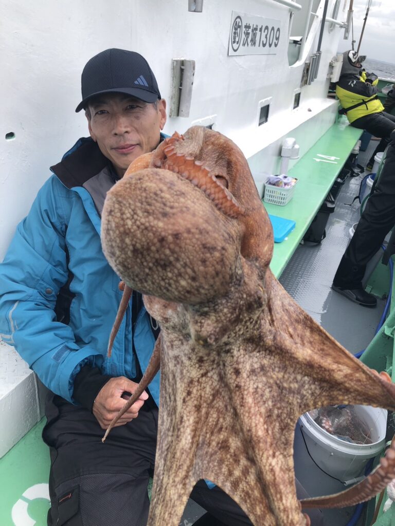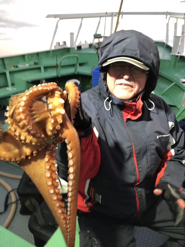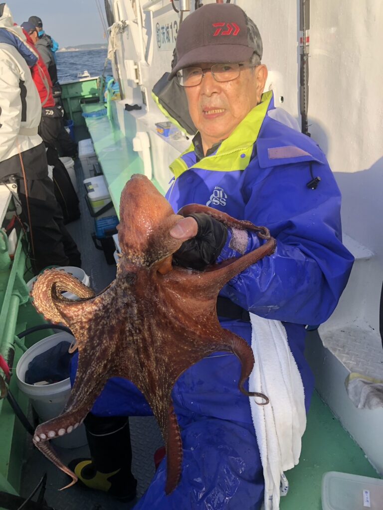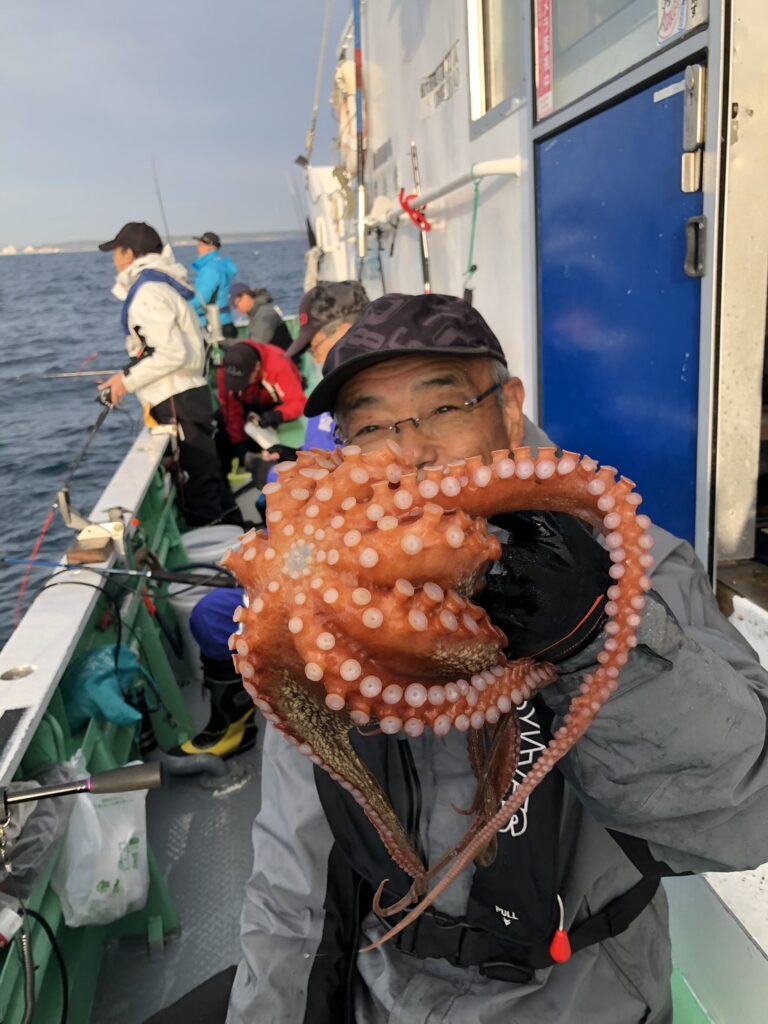 釣果 マダコ 1~18杯 竿頭15番席 スソ、竿頭共に船酔い 次頭16杯3番席 最大2.5kg