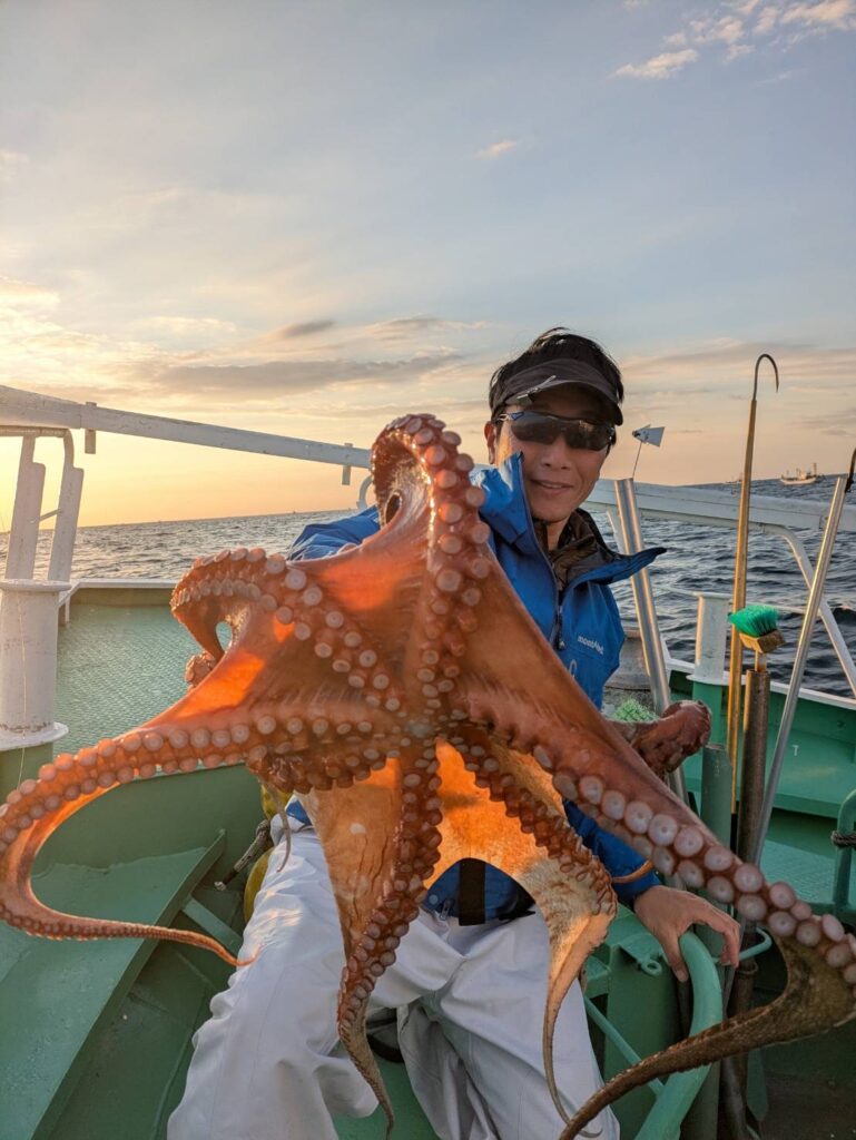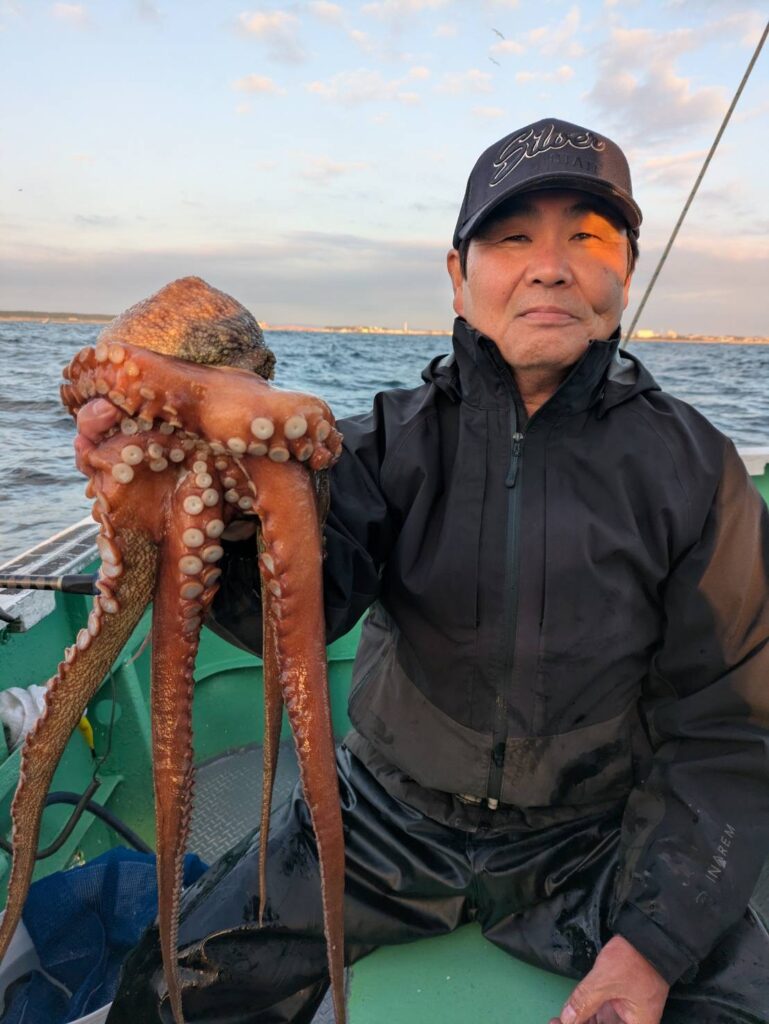 釣果 マダコ 2ー19杯 竿頭2番席 次頭15杯8番席 最大3.2kg 2杯は船酔い