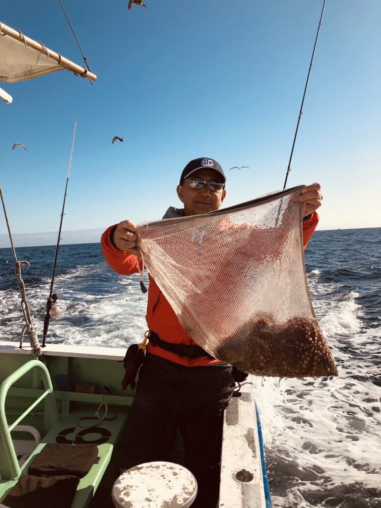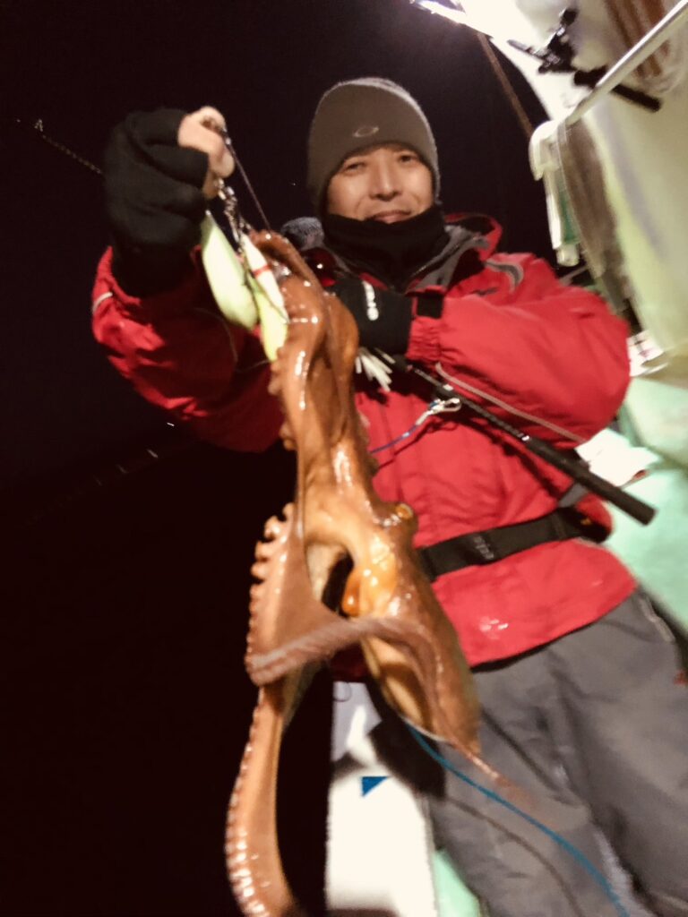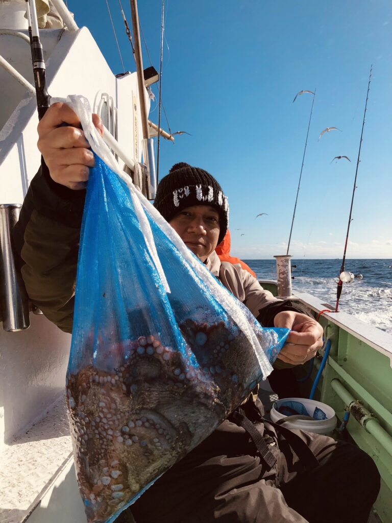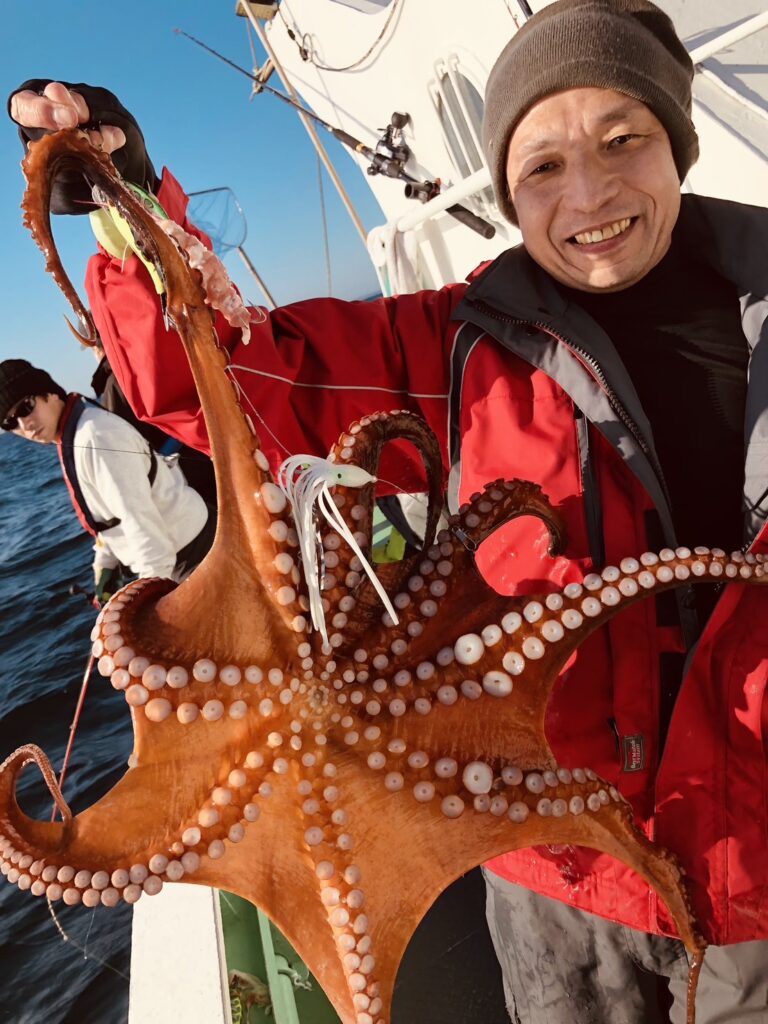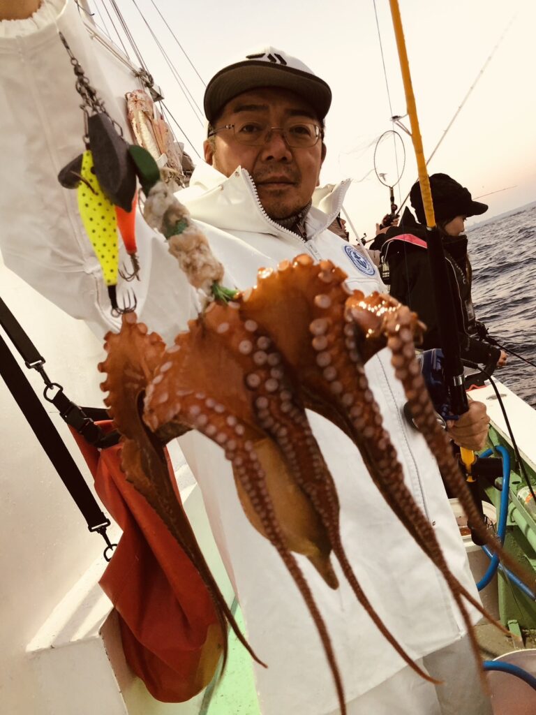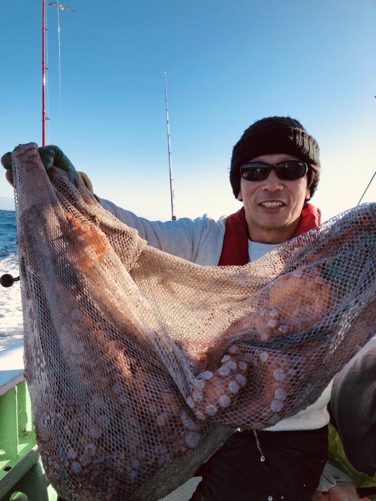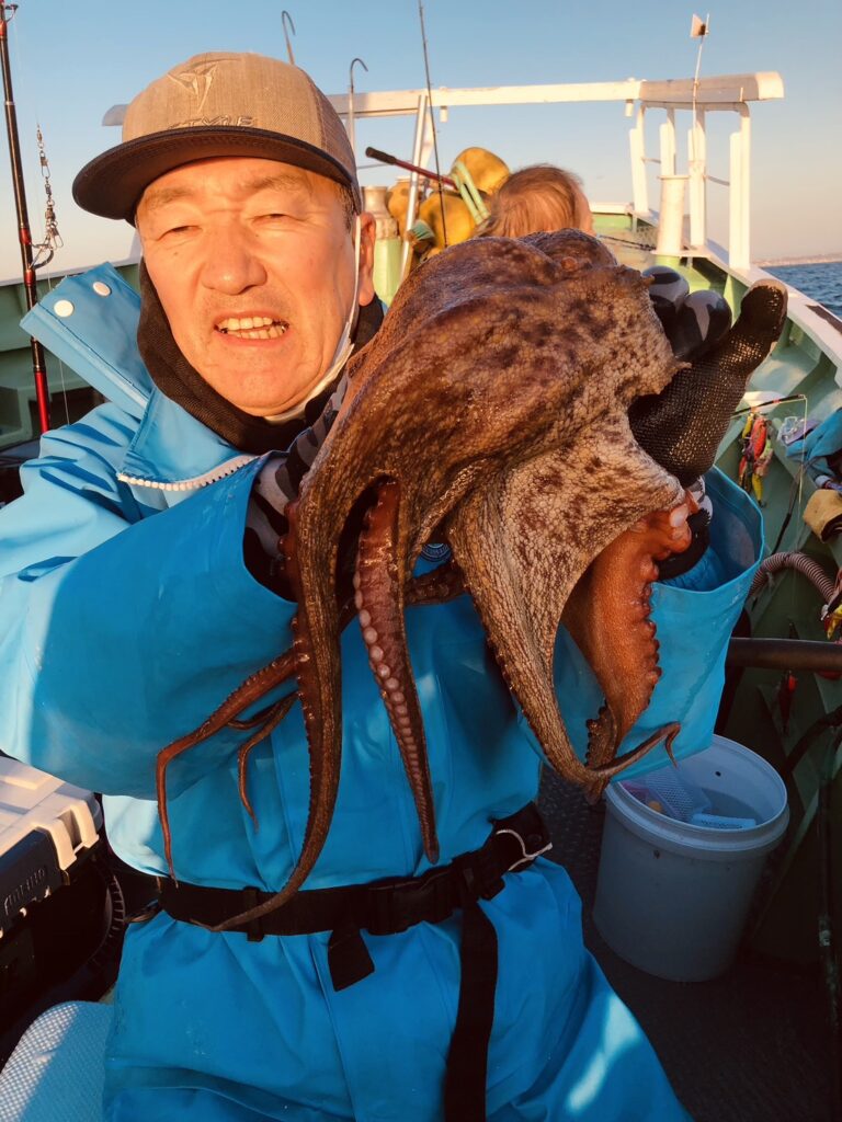 釣果 マダコ 0-8杯 竿頭7番席 次頭7杯14番席 最大3.0kg 型見ず船酔い1名様