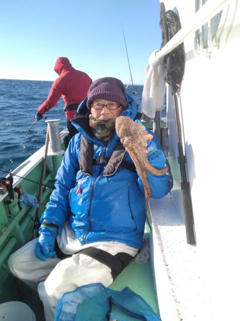 西の風強く波高し、流れも早すぎ釣りづらい状況が中盤まで続いた。タコの活性も低くく苦戦しましたが、時間間際に良い流しに当たり、5kg,2.0kg台他と渡りダコ掛かりました。数は伸びませんでした。